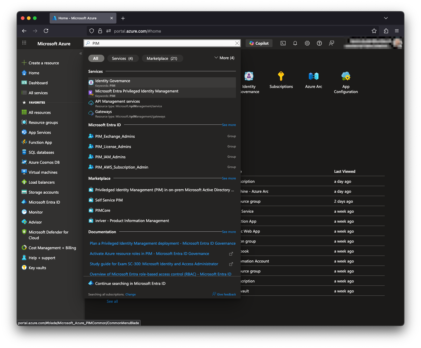 PIMModul. Dazu geben SiePIMin der Suchleiste ein und klicken auf den SucheintragMicrosoft Entra Privileged Identity Management. -