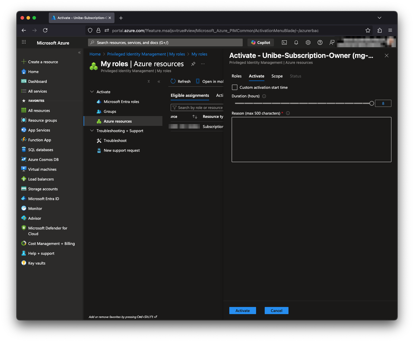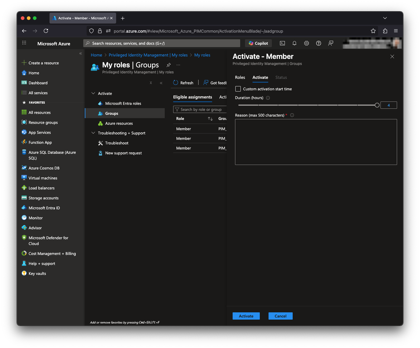 PIM erlaubt es Ihnen erhöhte Rechte selbständig zu aktivieren. Dieses Verhalten entspricht den gängisten Sicherheitsstandards. Man arbeitet Standardmässig mit den wenigsten Berechtigungen (sogenannt least privileges) und erhöht diese, falls die Arbeit diese benötigt.