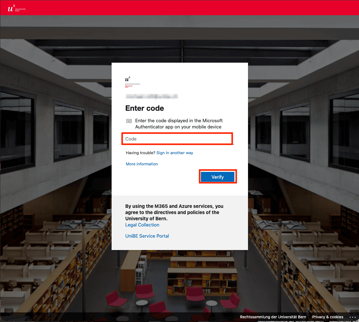 - Two-factor authentication must be completed. This varies by user. In this case, use the Microsoft Authenticator app to read the code and enter it in the