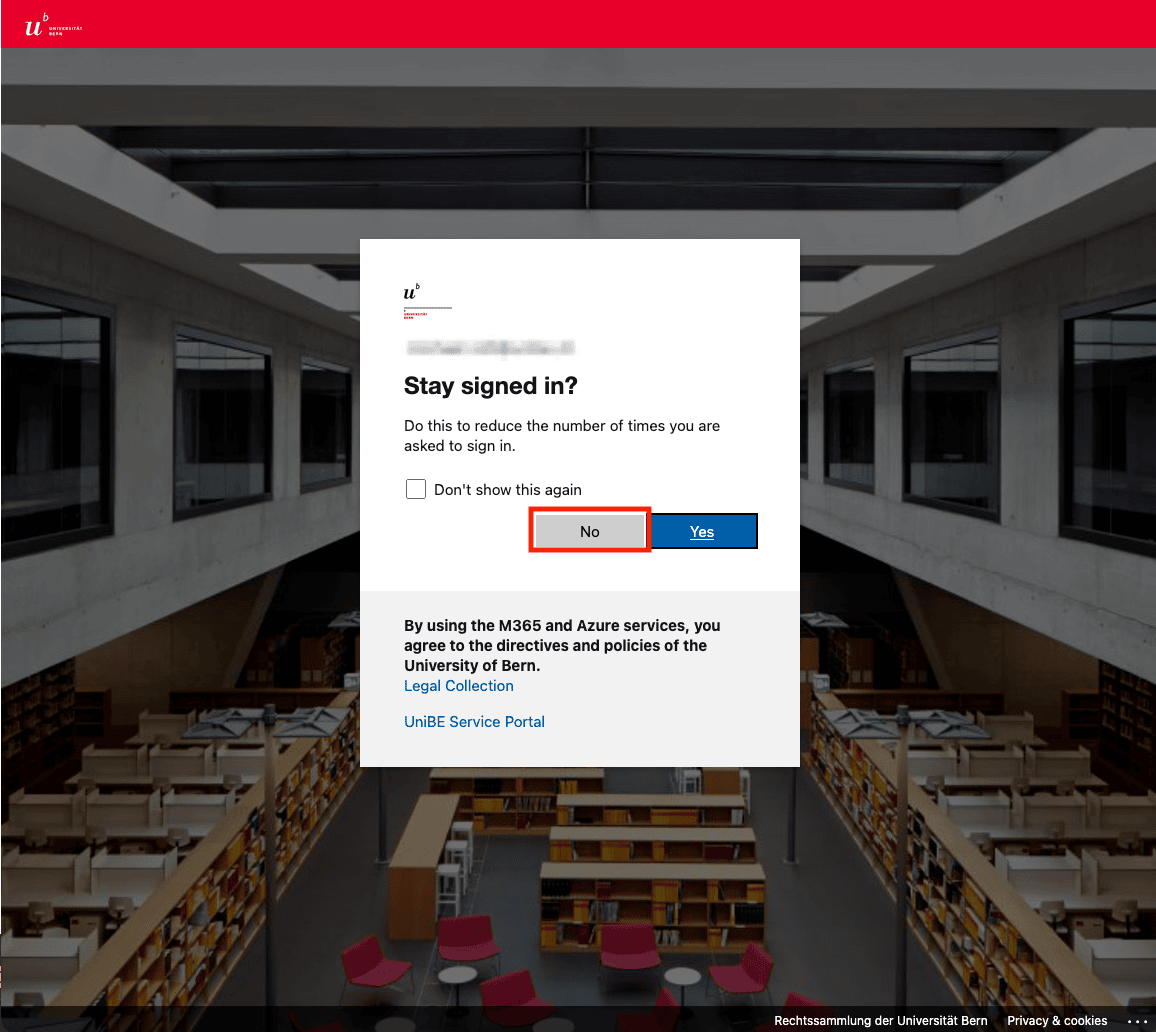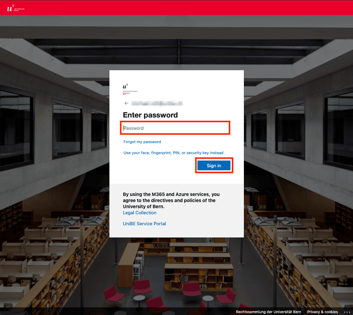 - Automatic redirection to the Microsoft login screen occurs. On this page, enter the University of Bern email address under